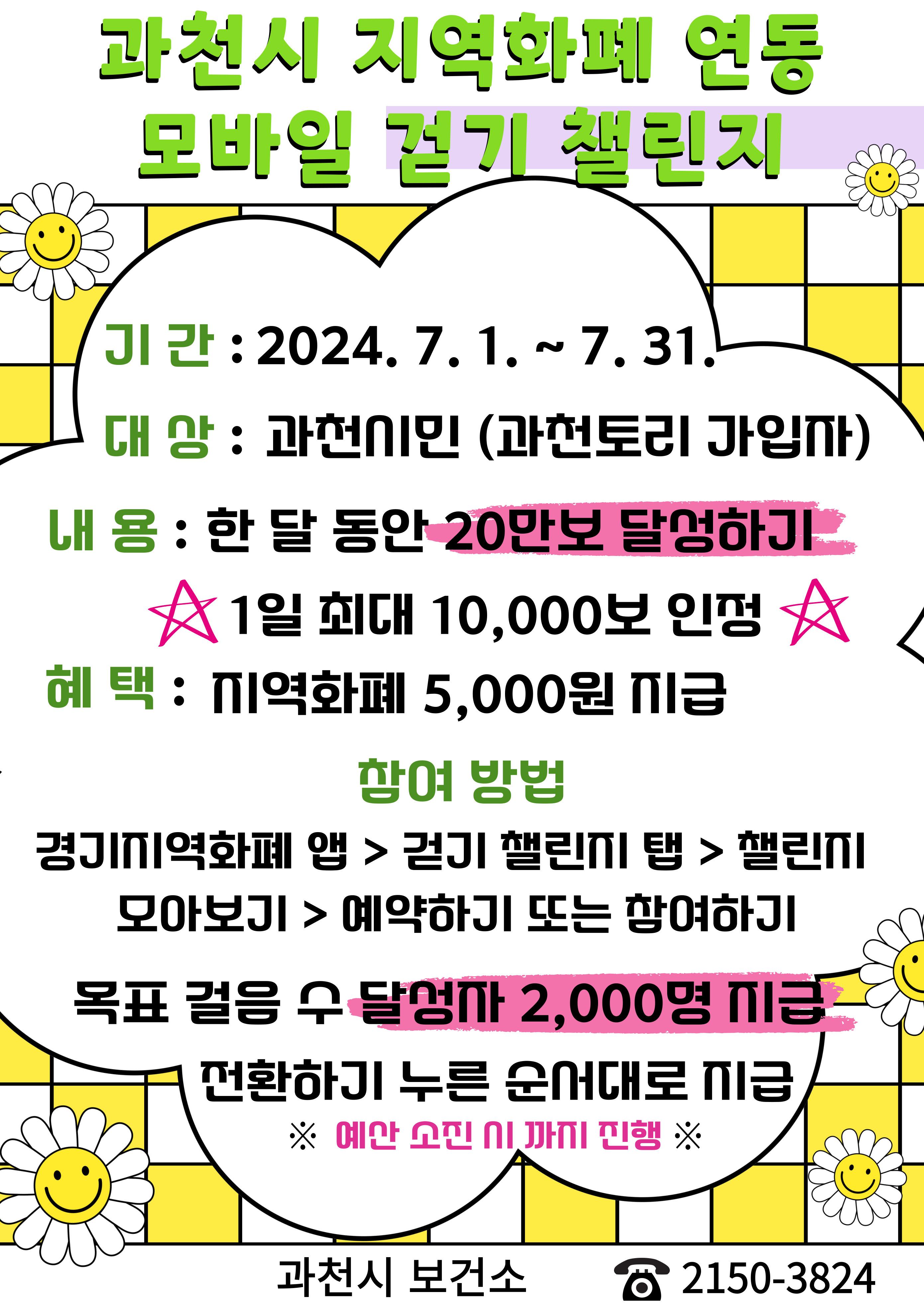 과천시 보건소 7월 지역화폐 연동 모바일 걷기 챌린지